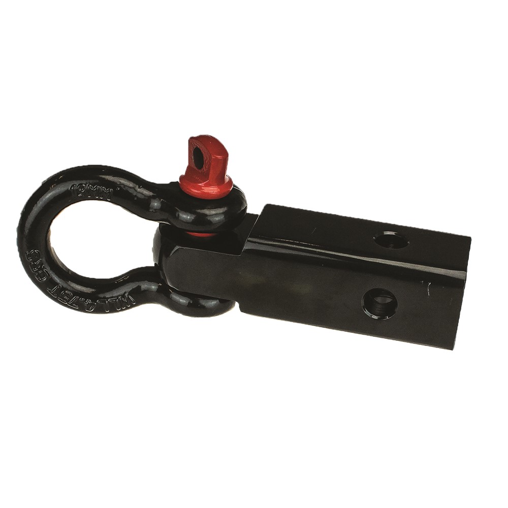 Alloy Construction. Made from lightweight Aluminium rated to 4.75T. Includes 1 X 4.75T Bow Shackle. Suits 50mm Towbar Hitches. Crossed drilled so you can use it either horizontally or vertically.